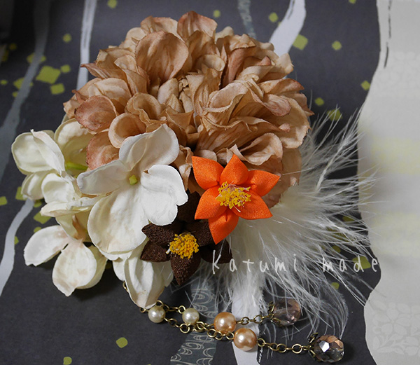 アーティフィシャルフラワーを使った、つまみ細工のコーム仕立てです、