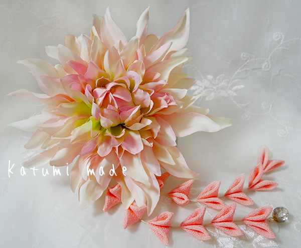 大きな1輪に、つまみ細工の下がりを組み合わせて艶やかにお使い頂けます。
