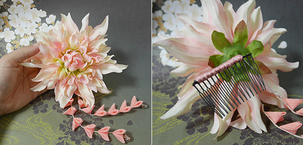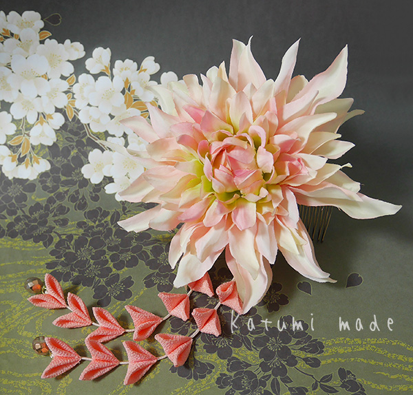 アーティフィシャルフラワーを使った、つまみ細工のコーム仕立てです、