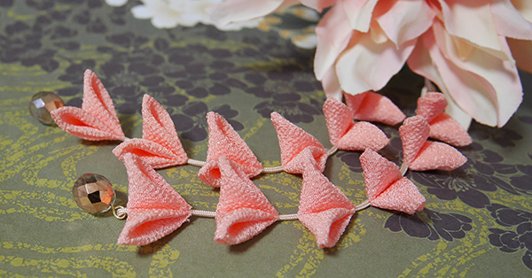 15pの大きなアーティフィシャルフラワーに、つまみ細工の下がりはビーズまで14pです。