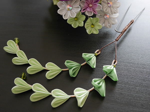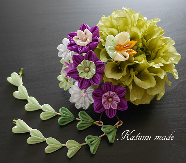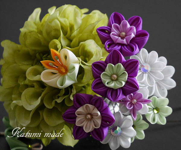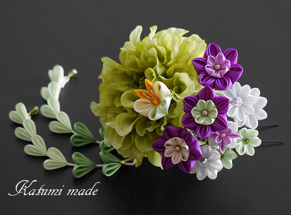シンプルな1輪に、つまみ細工を組み合わせて艶やかにお使い頂けます。