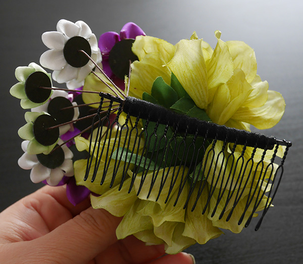 アーティフィシャルフラワーを使った、つまみ細工のコーム仕立てです、