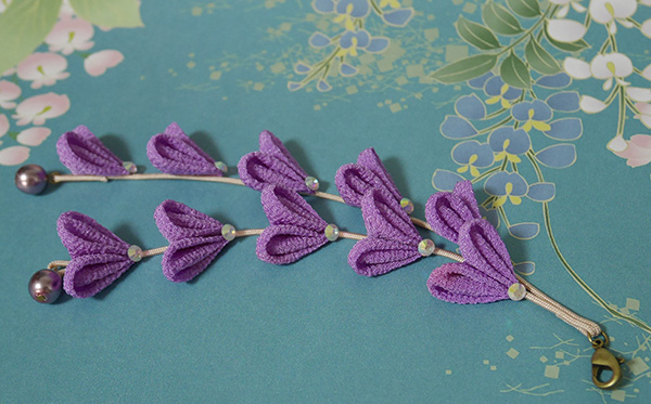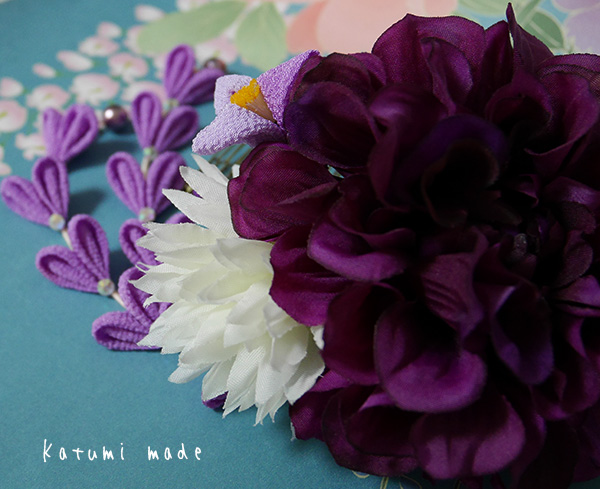 シンプルな1輪に、つまみ細工を組み合わせて艶やかにお使い頂けます。