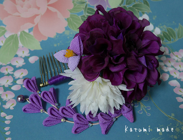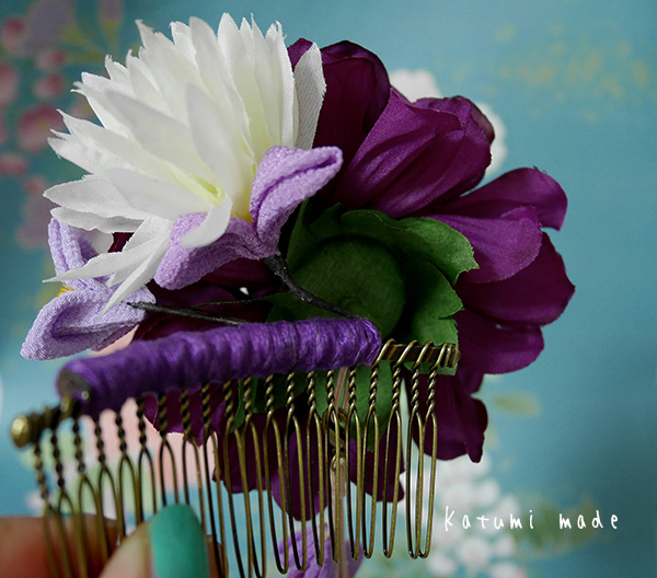 アーティフィシャルフラワーを使った、つまみ細工のコーム仕立てです、