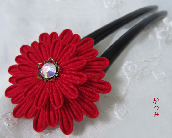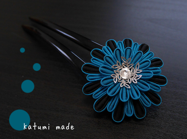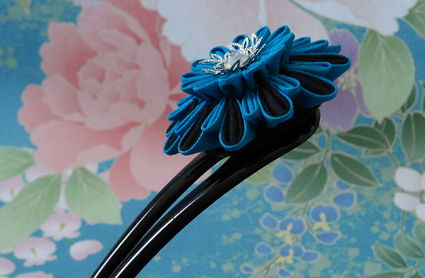 黒の平櫛につまみ細工を施しました。