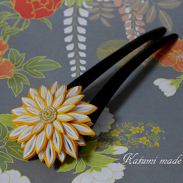 正絹羽二重で作りました、山吹色と銀色の組み合わせ、