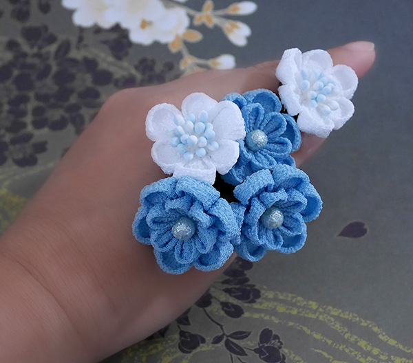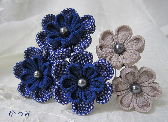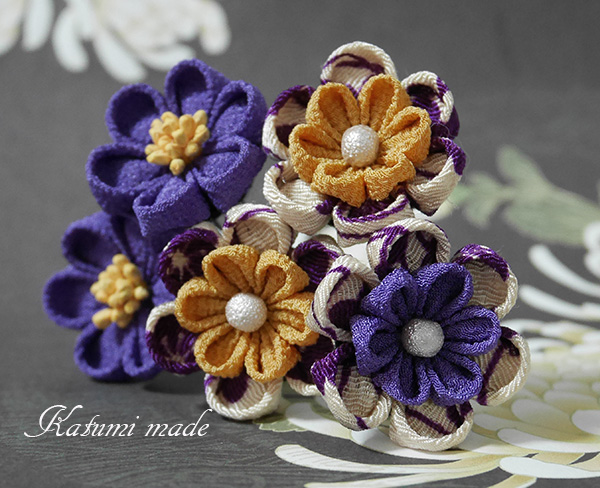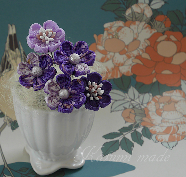 つまみ細工のUピン髪飾りセット(紫、ブルー系)