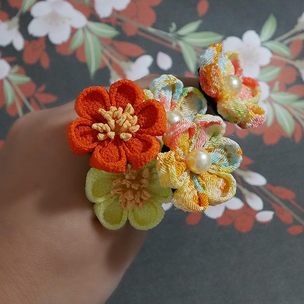 ba27つまみ細工のUピン5点セット、サンフレーア