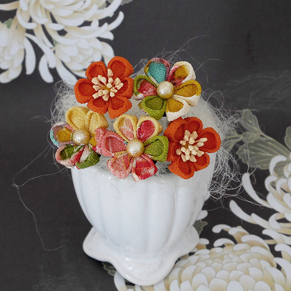 ba29つまみ細工のUピン5点セットスウィートオレンジ