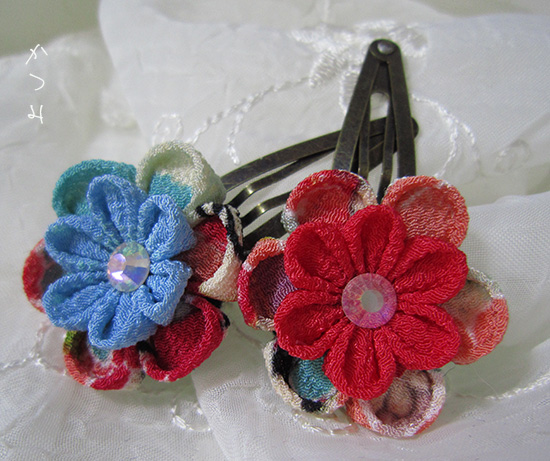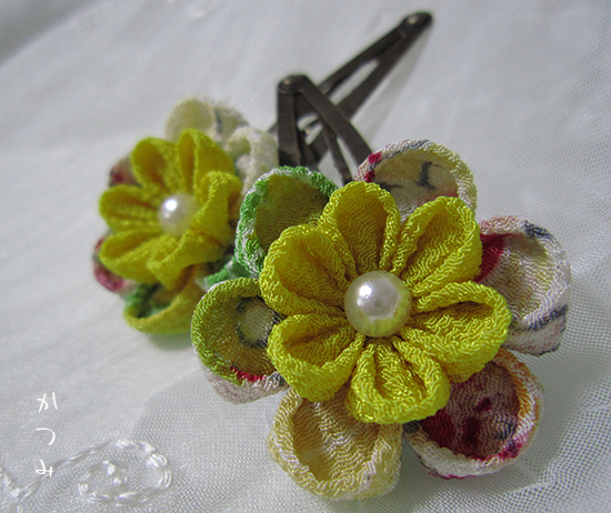 つまみ細工>パッチン留めつまみ細工