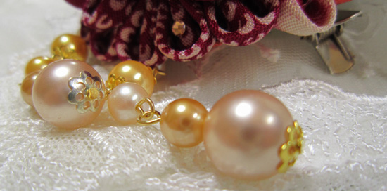 花芯は素玉ペップで下がりのビーズはblackガンメタパールビーズです、