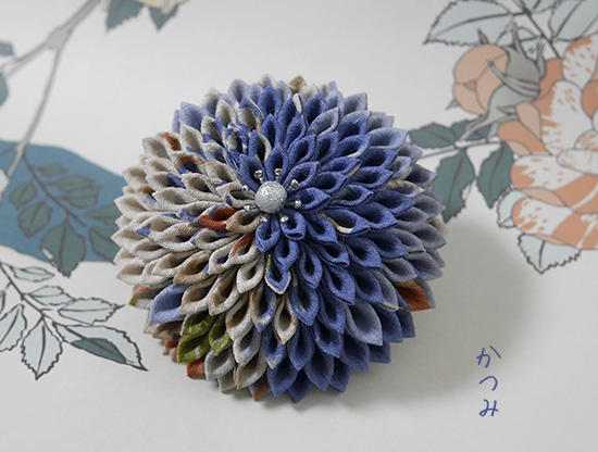 Home>つまみ細工ブローチ>ブローチ古布、青、紫系