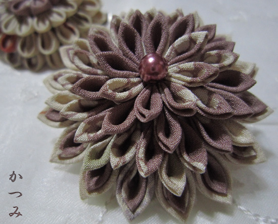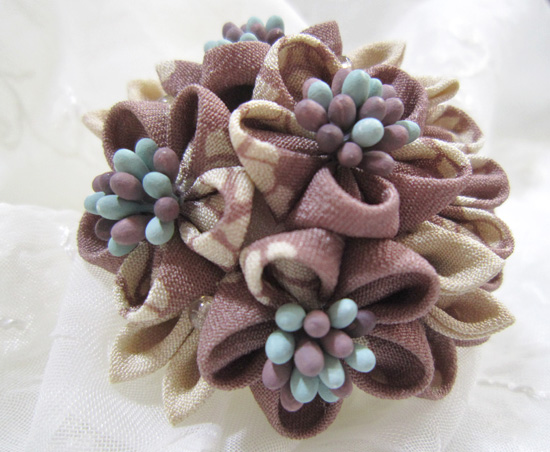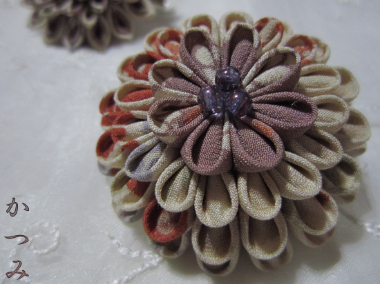 つまみ細工ブローチ>ブローチ古布