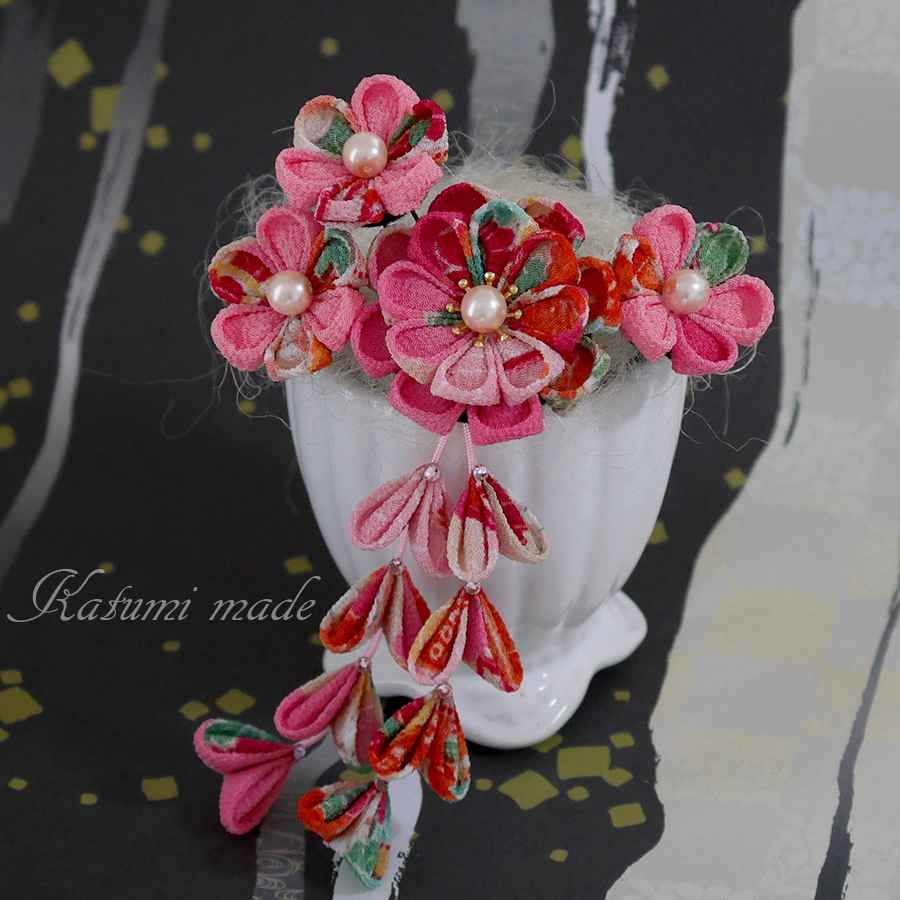 Home>Uピン仕立ての簪>つまみ細工の簪Uピンセット下がり付き