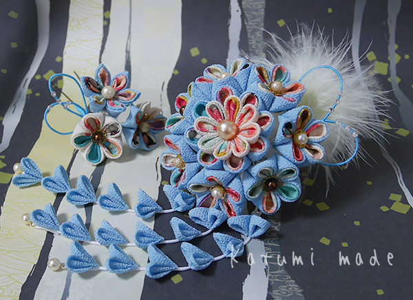 七五三、謝恩会・卒業式・成人式に個性的な髪飾りになります。