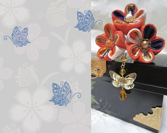 古布、古典柄一越ちりめん等でつまみの簪に仕上げました。
