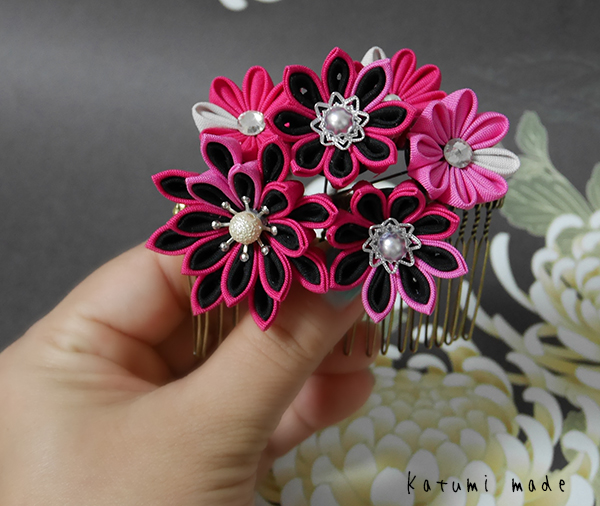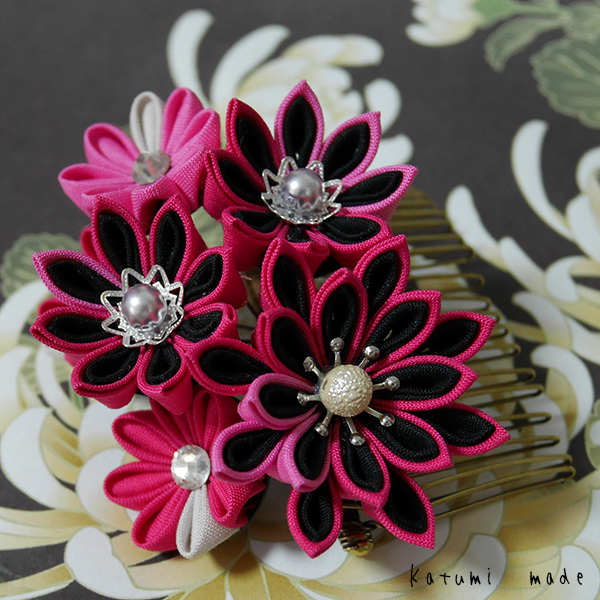 da08つまみ細工のヘアコーム*ディープ・ピンク