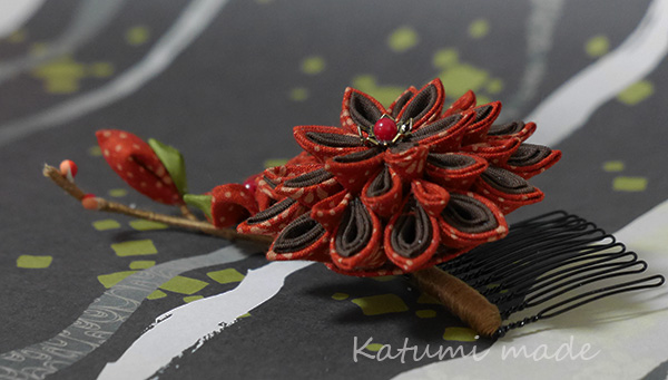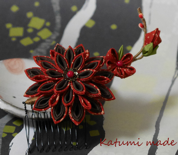 つまみ細工の木綿のヘアコームです、