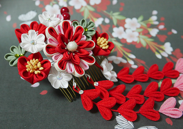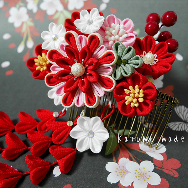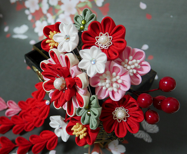 綸子の為、他の簪より重さがありますので、月齢の小さなお子様、髪が少ない方はご思案ください。