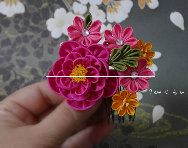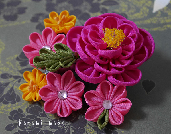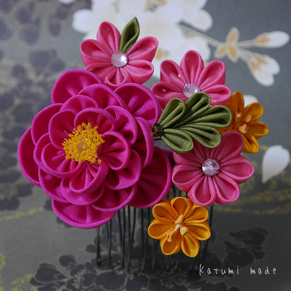 正絹羽二重で作りました、小さい花束のような大人可愛いコームです、、