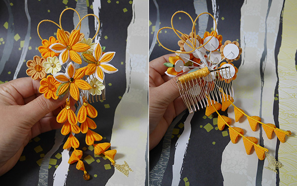 つまみ細工のヘアコームです、