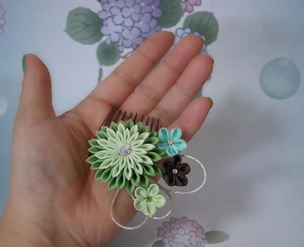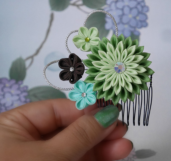 正絹羽二重で作りました、大人でも使えちゃうコーム飾りです、