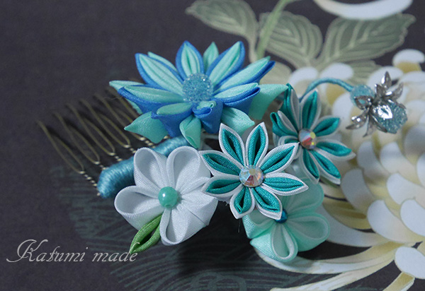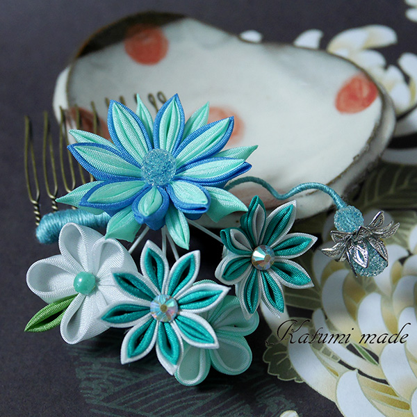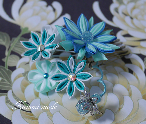 正絹羽二重で作りました、真白、銀、水色、ターコイズなど、