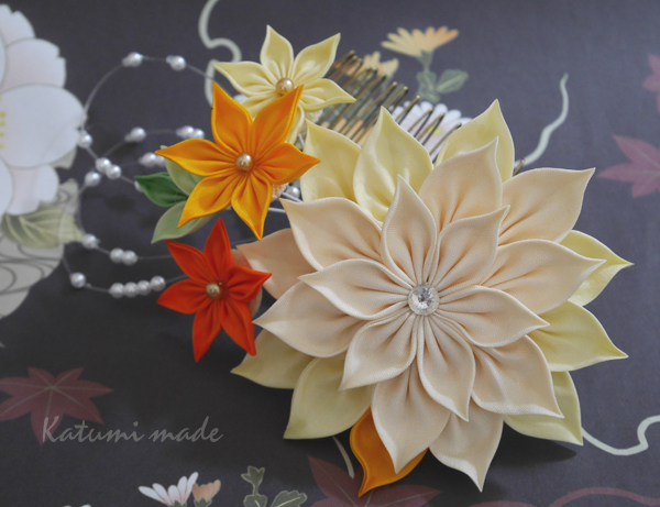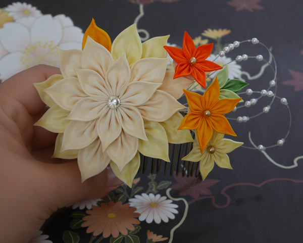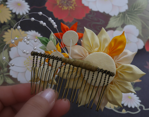 つまみ細工のヘアコームです、