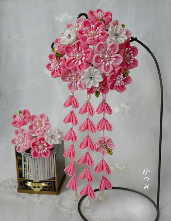 Home>艶やか簪>つまみ細工の簪(かんざし)ビラ、下がり付き