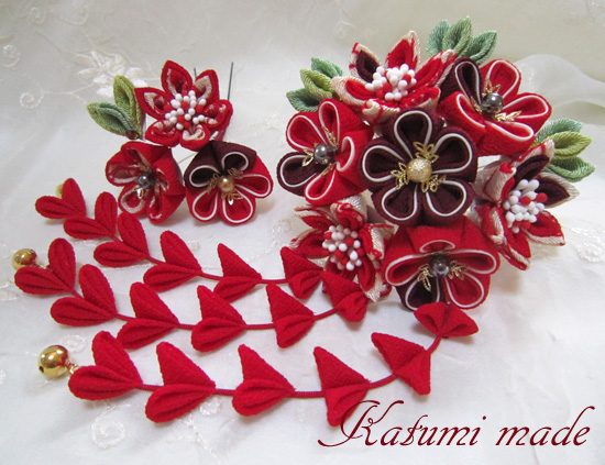 red06つまみ細工の赤い簪*イソクラ