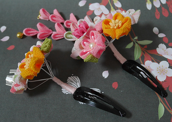 Home>ぱっちん留め>七五三の髪飾り、三歳用ぱっちん留め(スリーピン)