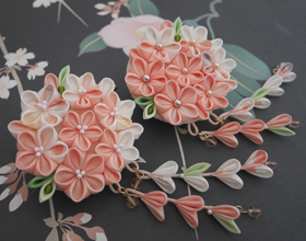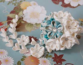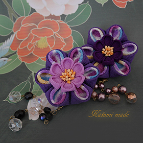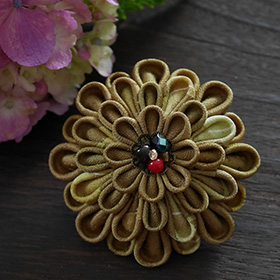 | 古布、風車 | 交織丸つまみ | 交織 | 紫陽花 |