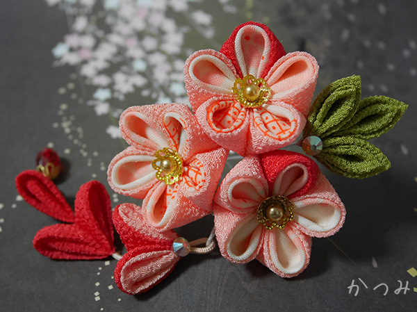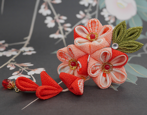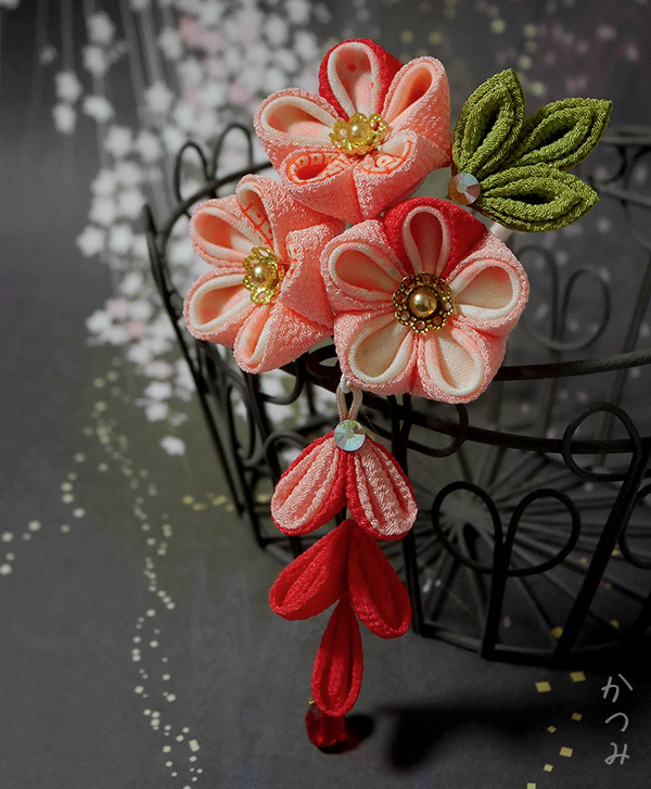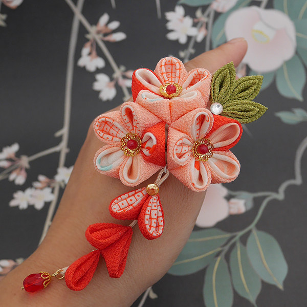 ume04つまみ細工のUピン簪鴛鴦*えんおう