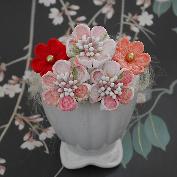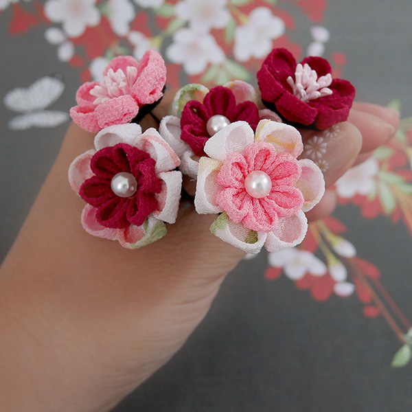 つまみ細工のUピン髪飾りセット(ピンク系)